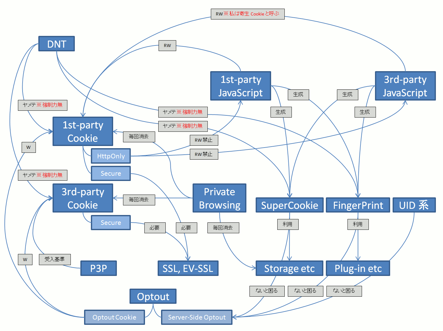 プライバシー(端的にはトラッキング)関連技術をキュートな概念図にまとめてみました。