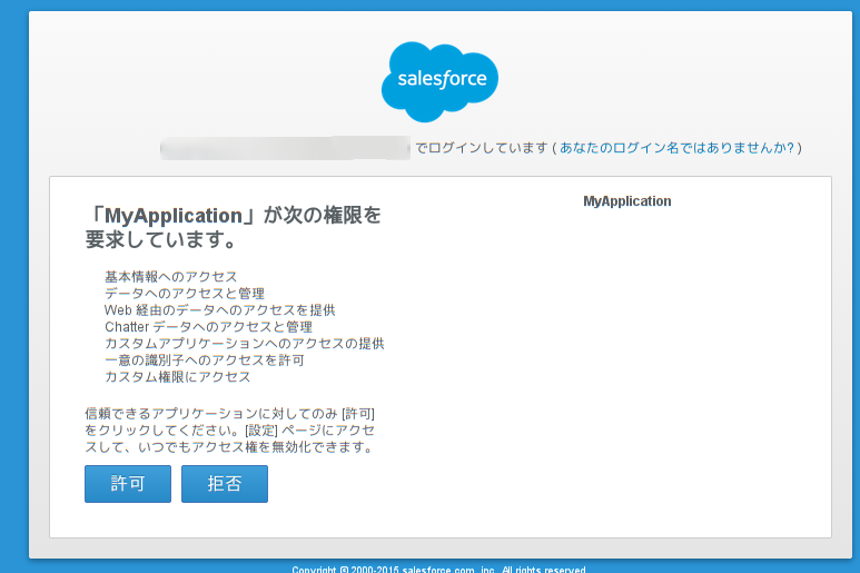 作成するアプリケーションはこの機能を使ってSalesforceに代理アクセスします。