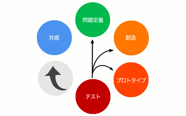 アメリカのIDEOというデザインコンサルティング会社(アップル社の最初のマウスをデザインしたとして有名)が、イノベーションを起こすための独自のアプローチを概念化したものとされています。