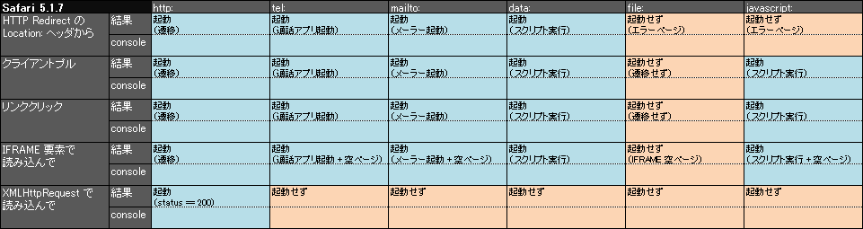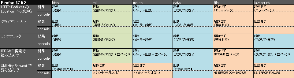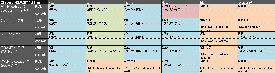 - 紫 : スキームに対応する処理が起動されるが、エラーページが表示される
