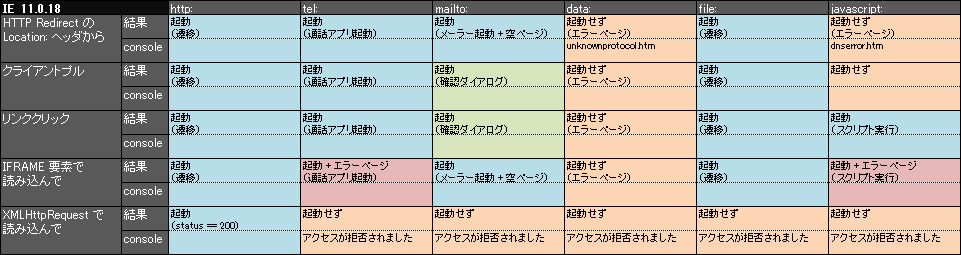 - IE11 は実行可否やユーザー確認有無の傾向が他ブラウザと異なる