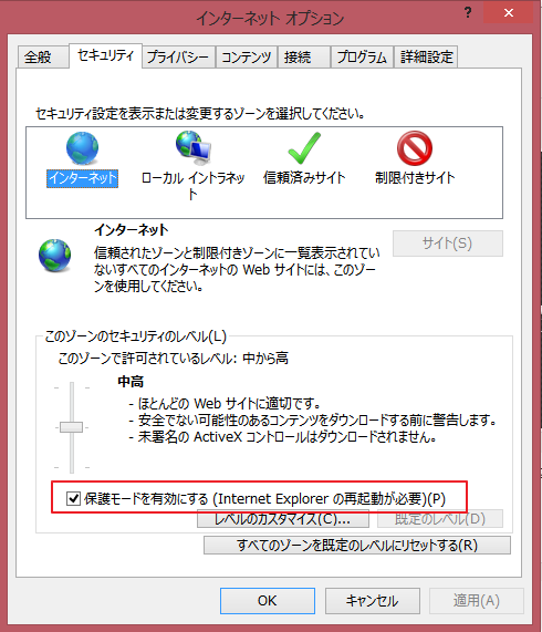 すべてのゾーンの「保護モードを有効にする」を統一する必要があります。