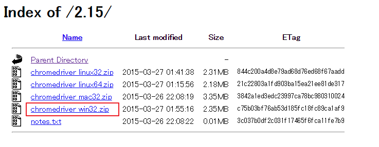 http://chromedriver.storage.googleapis.com/index.html?path=2.15/
