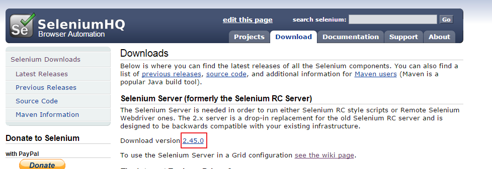 selenium-server-standalone-2.45.0.jarをダウンロードします。