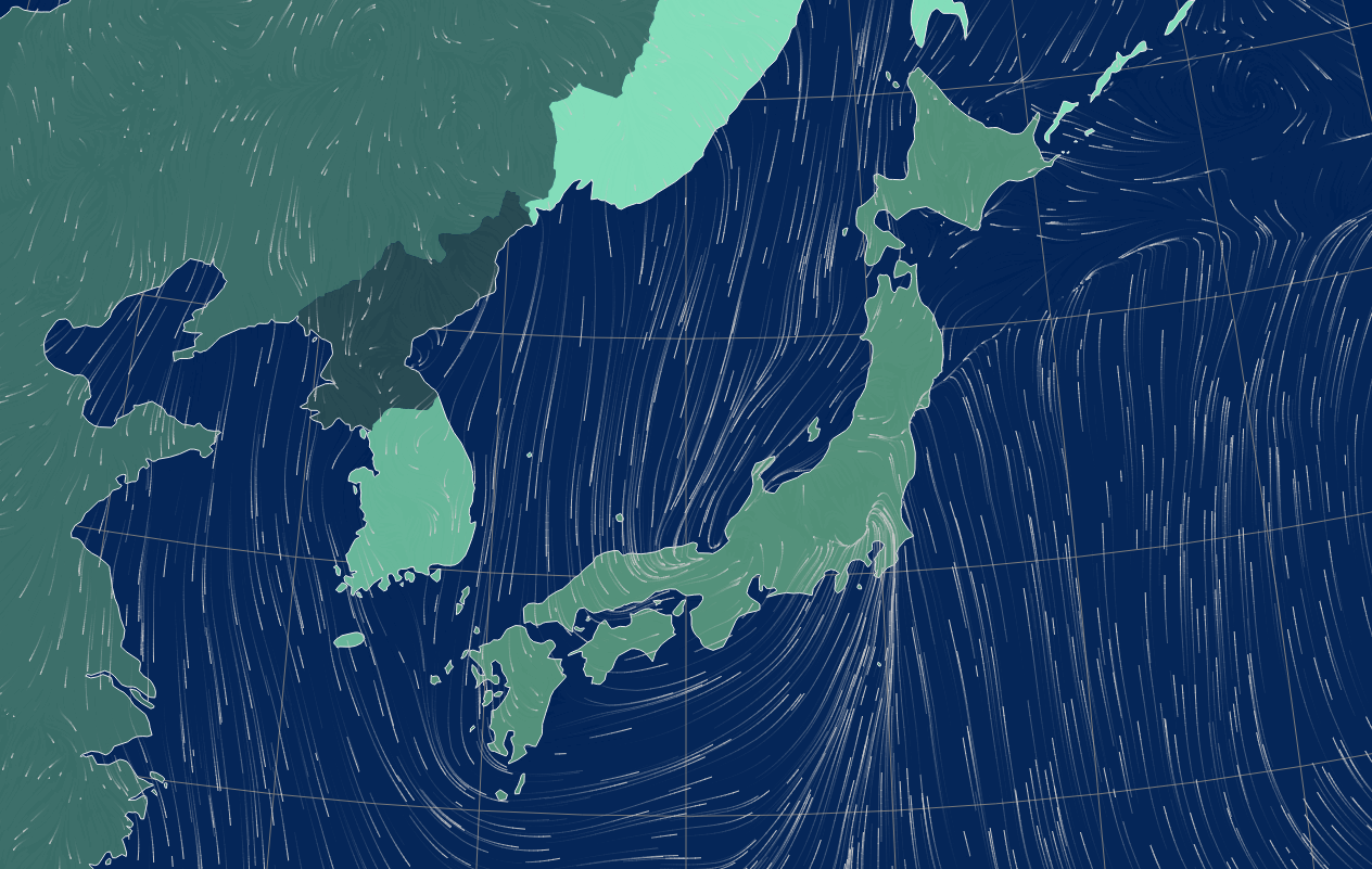 今回は、風データを固定された日時のデータを1つ利用して描画しました。