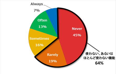この進め方ではスコープ調整によって作るものに優先順位付けが強制されます。完成したソフトウェアの機能のうち 64% がほとんど使われないと言いますが(Standish Group Chaos report 2002)、必要性の低い要件が紛れ込む余地が小さくなり、使われない機能を生みにくいプロセスとも言えます。