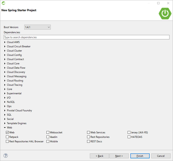 Dependencies は「Web」をクリックし、開いた領域の「Web」チェックボックスをチェック。