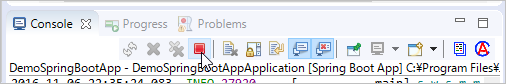 Console ビューに表示されている停止ボタンをクリックすると停止されます。