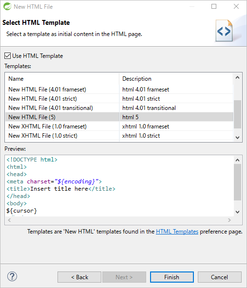 HTML Template は「New HTML File (5)」を選択。