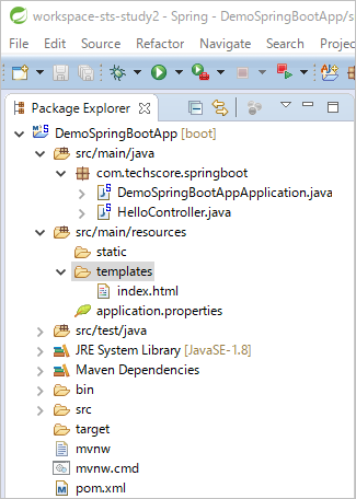 前回の記事では Spring Tool Suite (STS) でSpring Starter プロジェクトを作成してコントローラ内で設定したテキスト Hello World を画面に表示させました。