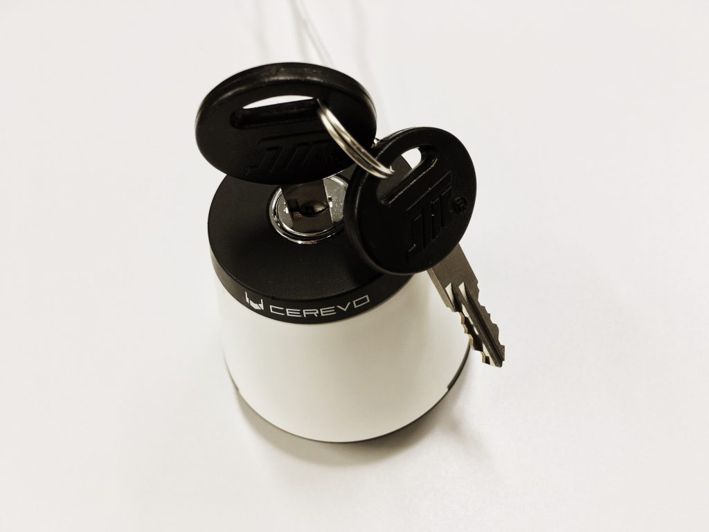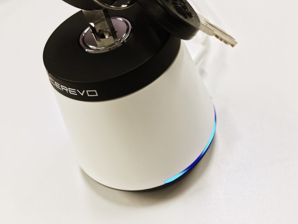 HackeyはCerevo社(https://www.cerevo.com/ja/)が販売しているキースイッチで、Wi-Fiを使ってインターネットに接続することができるIoT(Internet of Things=モノのインターネット)デバイスの1つです。円錐台の形をした本体には鍵穴が1つ。ここに鍵を差して、右にひねれば「ON」、左にひねれば「OFF」をWebサービスに伝えることができます。また、本体にはLEDインジケーターが内蔵されており、Webサービスから通知を受け取ると点灯します。電源はマイクロUSB給電。バッテリーは内蔵していませんから、本体だけを持ち運んで使うことはできません。価格はCerevo社の直販サイトで9,980円(税別、送料別)。私はAmazon.co.jpにて購入しましたが、本体価格は同じだったものの送料無料で入手できました。