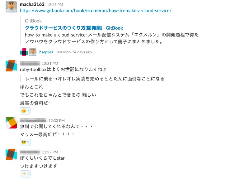 こんな感じで、エクメルンでの経験を越えて、エンジニアとしてのノウハウを書いています。