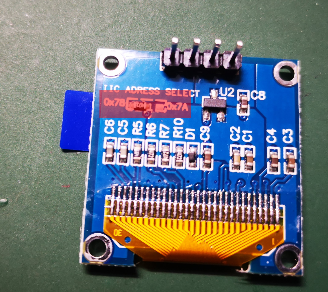 display.begin(SSD1306_SWITCHCAPVCC, 0x3C); の 0x3c ですが、モジュール裏面(下記写真の赤い部分)にある IIC ADDRESS SELECT が 0x7A と 0x78 のどちらに接続されているかで変わります。