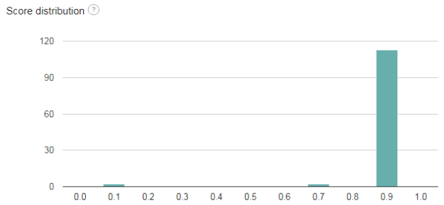 こちらは(ほぼ0.9となってしまいましたが)算出されたスコアの分布です。0.1であってもトークンチェックがNGで返されるわけではないのでご注意ください。