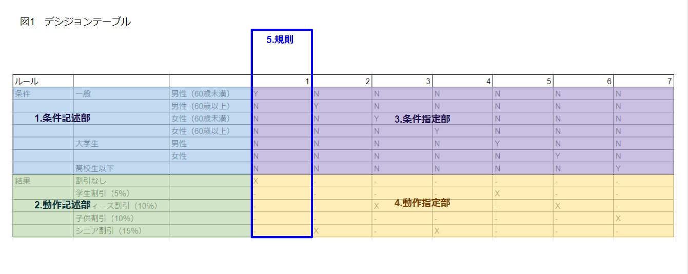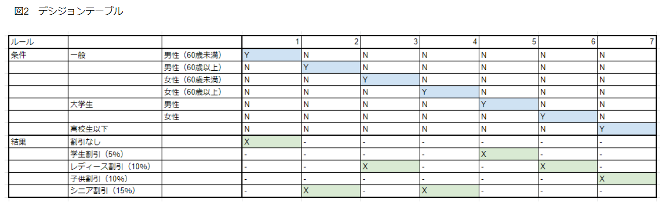 デシジョンテーブルを使うと、自然言語より視覚化でき、仕様の整頓もできます。