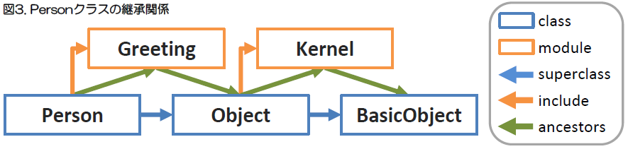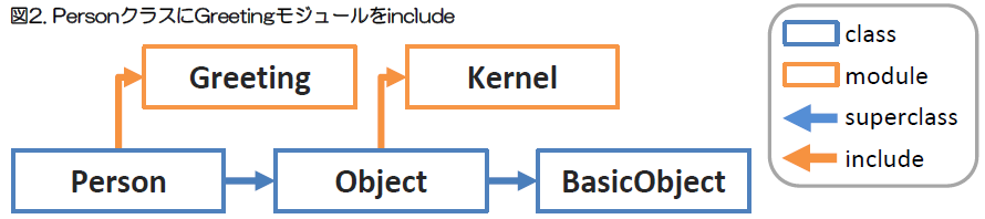 図2.はPersonクラスにGreetingモジュールをincludeした際の状態を表しています。